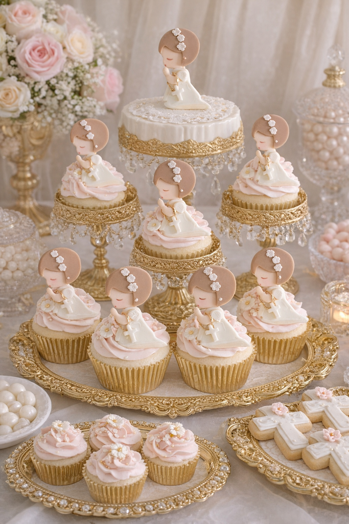 Elevate your child's baptism or communion celebration with these elegant toppers. Made for both cupcakes and cake pops, these 12 pieces feature a child with a rosary, adding a touch of faith to your treats. Perfect for commemorating this special milestone and impressing your guests.