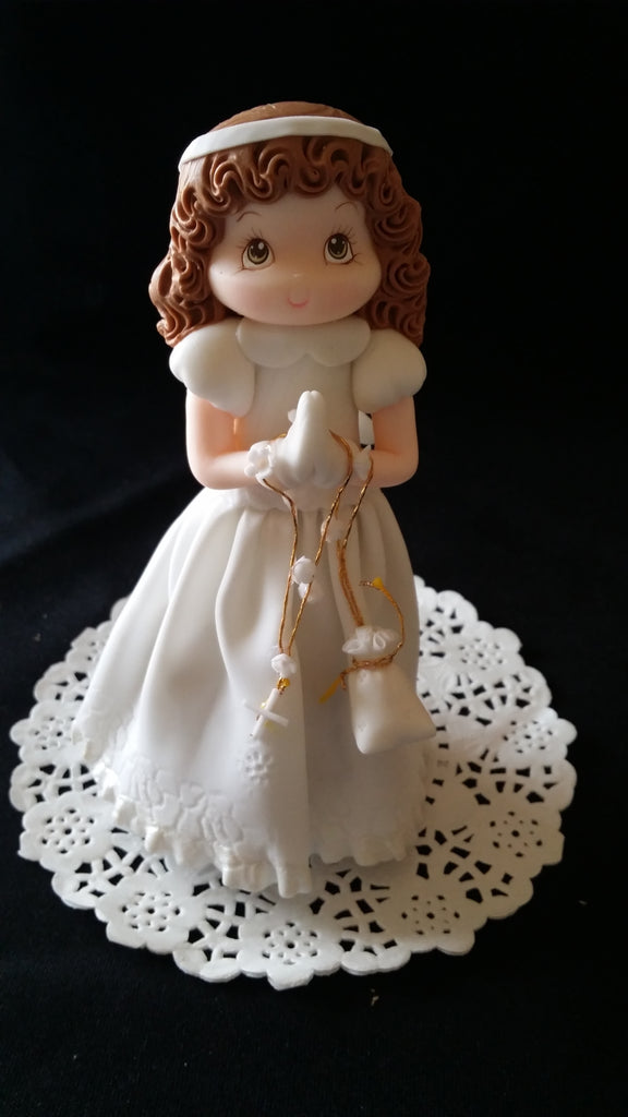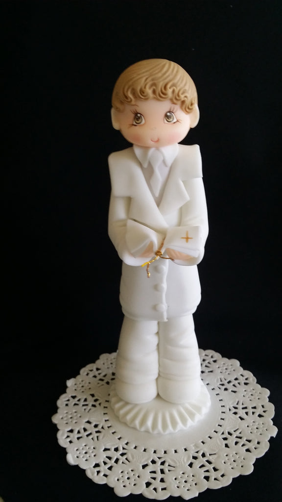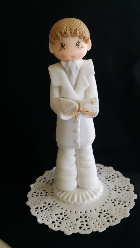 This adorable handmade First Communion Cake Topper is the perfect addition to your cake or centerpiece for a special boy or girl celebrating their First Communion or Baptism. Made of Cold Porcelain, it also makes a lovely keepsake or gift. Celebrate this milestone with this charming and unique decoration.