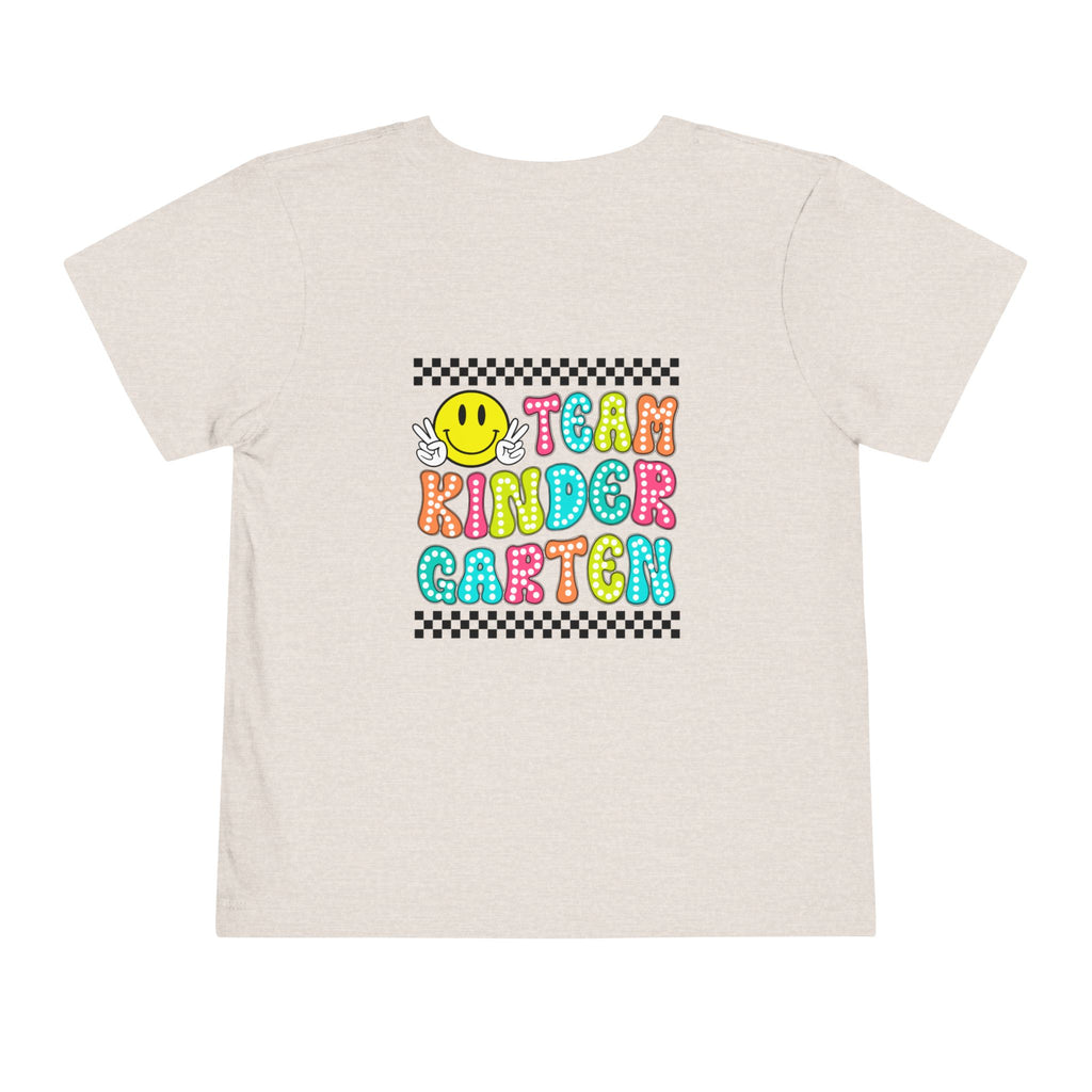 Personalized Peace Out Kindergarten Shirt a Kinder tee that brings a fun and stylish look for toddlers. It's perfect for kids entering or graduating from Pre K, making it a great gift idea. The tee has an aesthetic design that exudes a playful and youthful vibe, ideal for daily wear or special school events.